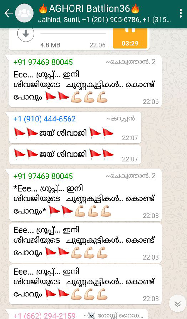 ദേ ഇന്നലെ ഒരു 4 മണി മുതൽ പരിചിതമല്ലാത്ത നമ്പറിൽ നിന്ന് കോളുകൾ, കോൾ അറ്റന്റ് ചെയ്താൽ വധഭീഷണി ., എന്താ കാര്യം എന്നൊന്നും പറയുന്നില്ല 'ജയ് ശിവാജി ' എന്നൊക്കെ പറയുന്നത് കേൾക്കാം. ഞാനത് കാര്യമാക്കിയില്ല, ഇടയ്ക്ക് കാശ് കടം വങ്ങിയിട്ട് കൊടുക്കാത്ത സുഹൃത്തുക്കൾ വിളിച്ച് സുഖാന്വേഷണം നടത്തുന്നതായിട്ടെ ഞാനതിനെ കണ്ട്ള്ളൂ., കുറച്ച് കഴിഞ്ഞപ്പം സിനിമയുടെ പ്രൊമോഷന് വേണ്ടിതുടങ്ങിയ ഗ്രൂപ്പിൽ ഇവർ കയറി, അഡ്മിൻ പാനലിൽ ഉണ്ടായിരുന്ന സുഹൃത്തിനോട് പ്രൊമോഷൻ പൊരിപ്പിച്ച് തരാന്ന് പറഞ്ഞപ്പോൾ നമ്മടെ സുഹൃത്ത് ഡിനു മോഹൻ അവനെ അഡ്മിനാക്കി അത് മാത്രേഡിനു വിന് ഓർമ്മയുള്ളൂ... പിന്നെ അഡ്മിൻ സെല്ലാം ഗ്രൂപ്പിൽ നിന്ന് പുറത്താക്കപ്പെട്ടു തുടങ്ങി, ഗ്രൂപ്പ് ശിവജിയുടെ ചുണക്കുട്ടികൾ ഏറ്റെടുത്തു എന്നുള്ള സന്ദേശവും, ത്രിപുര പിടിച്ചെടുത്ത സന്തോഷമായിരുന്നു, അവന്മാർക്ക്.