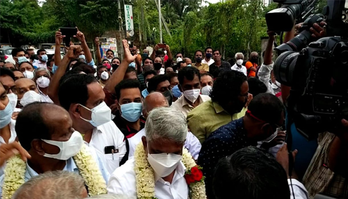 കണ്ണൂർ: ഫസൽ വധക്കേസിൽ ജാമ്യവ്യവസ്ഥയിൽ ഇളവ് ലഭിച്ചതിനെ തുടർന്ന് ജന്മനാടായ തലശേരിയിലെത്തിയ കാരായിമാർക്ക് സിപിഎം നേതാക്കളും പ്രവർത്തകരും ആവേശകരമായ സ്വീകരണം നൽകി. വെള്ളിയാഴ്ച്ച വൈകുന്നേരത്തോടെ തലശേരി റെയിൽവേ സ്റ്റേഷനിലെത്തിയ ഇരുവരെയും സിപിഎം ജില്ലാ സെക്രട്ടറി എം.വി ജയരാജൻ പുഷ്പഹാരമണിയിച്ചു സ്വീകരിച്ചു. തുടർന്ന് സ്വീകരണ സമ്മേളന നഗരിയായ തലശേരി റൂറൽ സഹകരണ ബാങ്ക് ഓഡിറ്റോറിയത്തിലേക്ക് ആനയിച്ചു. സ്വീകരണ സമ്മേളനം സിപിഎം ജില്ലാ സെക്രട്ടറി എം.വി ജയരാജൻ ഉദ്ഘാടനം ചെയ്തു.സംസ്ഥാന കമ്മിറ്റിയംഗം പി.ജയരാജൻ മുഖ്യാതിഥിയായി. സ്വീകരണ പരിപാടിക്ക് ശേഷം കാരായി രാജനെ ജന്മനാടായ കതിരൂർ പുല്യോടിലെക്കും കാരായി ചന്ദ്രശേഖരനെ തിരുവങ്ങാട്ടേക്കും നിരവധി വാഹനങ്ങളുടെ അകമ്പടിയോടെ ആനയിച്ചുകൊണ്ടു പോയി.നേതാക്കളും പ്രവർത്തകരുമടങ്ങുന്ന നിരവധിപ്പേർ സ്വീകരണ പരിപാടിയിൽ പങ്കെടുത്തു.