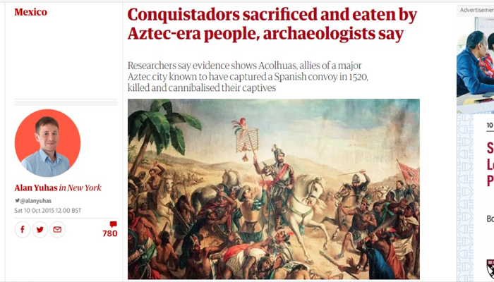 ദൈവങ്ങളെ പ്രീതിപ്പെടുത്താനായി വർഷം 20,000 മനുഷ്യരെ വരെ നരബലിയായി നൽകിയിരുന്ന ഒരു ജനവിഭാഗമുണ്ടായിരുന്നു മധ്യ മെക്സിക്കോയിൽ. അവരാണ് ആസ്ടെക്കുകൾ. അഞ്ചു ദൈവങ്ങളായിരുന്നു പ്രധാനമായും ആസ്ടെക്കുകൾക്കുണ്ടായിരുന്നത്. ഓരോ ദൈവത്തിനും ഓരോ രീതിയിലുള്ള ബലിയർപ്പിക്കൽ രീതികളും. ജീവനുള്ള ശരീരത്തിൽ നിന്ന് ഹൃദയം പറിച്ചെടുക്കുന്നതുമുതൽ മൃഗങ്ങൾക്കൊപ്പം തീയിൽ ചുട്ടെരിക്കുന്നതുവരെയുള്ളവ. മധ്യ മെക്സികോയിൽ 1300 മുതൽ 1521 വരെയുള്ള കാലത്താണ് ആസ്ടെക്കുകൾ ജീവിച്ചിരുന്നത്. സ്പാനിഷ് സാഹിത്യങ്ങളിലും ഈ ക്രൂരനരബലിയെക്കുറിച്ച് പരാമർശമുണ്ട്.