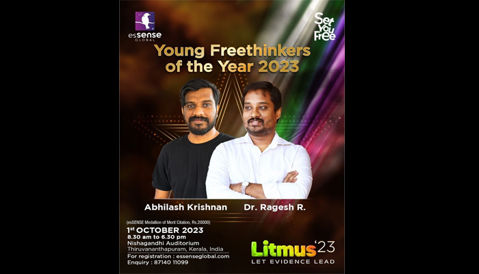 തിരുവനന്തപുരം: ശാസ്ത്രപ്രചരണവും സ്വതന്ത്രചിന്തയും നാസ്തികതയും പ്രചരിപ്പിക്കുന്നതിൽ സന്നദ്ധ പ്രവർത്തനം നടത്തുന്നവർക്ക് എസ്സെൻസ് ഗ്ലോബൽ നൽകുന്ന പുരസ്ക്കാരങ്ങൾ ഒക്ടോബർ ഒന്നിന് തിരുവനന്തപുരം നിശാഗന്ധിയിലെ ലിറ്റ്മസ് 2023 വേദിയിൽ സമ്മാനിക്കുമെന്ന് സംഘാടകർ അറിയിച്ചു. കെ. കെ. അബ്ദുൾ അലി, സന്തോഷ് മാത്യു, ഡോ രാഗേഷ്, അഭിലാഷ് കൃഷ്ണൻ, എന്നിവരാണ് ഇത്തവണ പുരസ്ക്കാരത്തിന് അർഹരായത്.