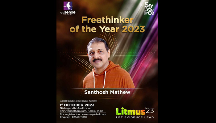 ഈ വർഷത്തെ മികച്ച ഫ്രീ തിങ്കറിനുള്ള എസ്സെൻസ് പ്രൈസ്, കോഴിക്കോട് പേരാമ്പ്ര സ്വദേശിയായ സന്തോഷ് മാത്യു (51) വിനാണ്. സോഫ്റ്റ് വെയർ ഡെപലെപ്പ്മെന്റ് രംഗത്ത് ടീം ലീഡറയ സന്തോഷ്, ലിറ്റ്മസ് 19 ൽ അടക്കം കോഴിക്കോട് നടന്ന നിരവധി എസ്സെൻസ് പരിപാടികളുടെ മുന്നണിയിൽനിന്ന ഒരാൾ എന്ന നിലയിൽ ശ്രദ്ധേയനാണ്. 25,000 രൂപയുടെ കാഷ് അവാർഡാണ് സന്തോഷ് മാത്യുവിന് സമ്മാനമായി ലഭിക്കുക.