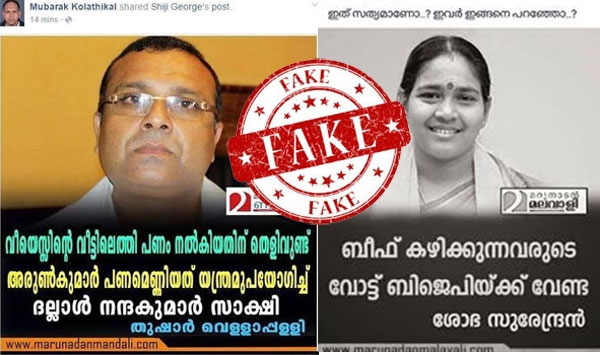 മറുനാടന്റെ ലോേഗായും മറുനാടന്റെ അവതരണ രീതിയും ചെറുതായി മാറ്റം വരുത്തിയായിരുന്നു അന്നത്തെ പ്രചരണം. അതുകൊണ്ട് തന്നെ പലരും തെറ്റിധരിക്കുകയും ചെയ്തു. ഇത്തരത്തിൽ മറുനാടന്റെ പേര് വളച്ചൊടിച്ച് വ്യാജപോസ്റ്റുകൾ വ്യാപകമായി വാട്‌സ് ആപ്പിലും ഫേസ്‌ബുക്കും പ്രചരിക്കുന്ന വിവരം മറുനാടൻ വായനക്കാർ തന്നയാണ് ശ്രദ്ധയിൽപ്പെടുത്തിയത്. മറുനാടൻ മണ്ടാളി എന്ന പേര് വച്ചാണ് ഈ വ്യാജ പോസ്റ്റർ പ്രചരിച്ചിരുന്നത്. ഒറ്റനോട്ടത്തിൽ മറുനാടൻ മലയാളിയുടെ പോസ്റ്ററെന്ന് തോന്നുന്ന വിധത്തിലാണ് ഫോട്ടോഷോപ്പിലെ മിനുക്കുപണികൾ. ഇതിന് മുമ്പും മറുനാടൻ വായനക്കാരെ തെറ്റിദ്ധരിപ്പിക്കാൻ ശ്രമം നടന്നിരുന്നു. ഇതേ മാതൃകയാണ് ഇപ്പോഴും ശോഭാ സുരേന്ദ്രനെതിരെ ആവർത്തിക്കുന്നത്.