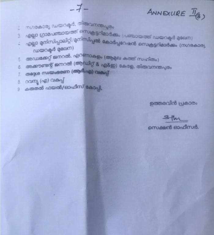കൊച്ചി: കെട്ടിട നിർമ്മാണവുമായി ബന്ധപ്പെട്ട അപേക്ഷയിൽ നിർമ്മാണം നടത്താൻ നിശ്ചയിച്ചിട്ടുള്ള ഭൂമി കേരള ലാന്റ് അസൈമെന്റ് ആക്ട് 1960 പ്രകാരം ഒരു പ്രത്യേക ആശ്യത്തിന് പതിച്ച് നൽകിയതാണോ അല്ലയോ എന്ന് വില്ലേജ് ഓഫീസർ പരിശോധിക്കണമെന്നും ഇതുപ്രകാരമുള്ള വിവരങ്ങൾ കൂടി രേഖപ്പെടുത്തിയാവണം വില്ലേജ് ഓഫീസർമാർ പൊസസെഷൻ സർട്ടിഫിക്കറ്റ് നൽകേണ്ടതെന്നും റവന്യൂവകുപ്പ്. പെർമ്മിറ്റ് അനുവദിക്കുന്ന കാര്യത്തിൽ ഇതെ മാനദണ്ഡം തുടരണമെന്ന് തദ്ദേശ-സ്വയം ഭരണവുപ്പും. ഉത്തരവുകൾ സംസ്ഥനത്ത് നിർമ്മാണ നിരോധനത്തിന് വഴിതെളിക്കുന്നതെന്ന പരക്കെ ആക്ഷേപം.