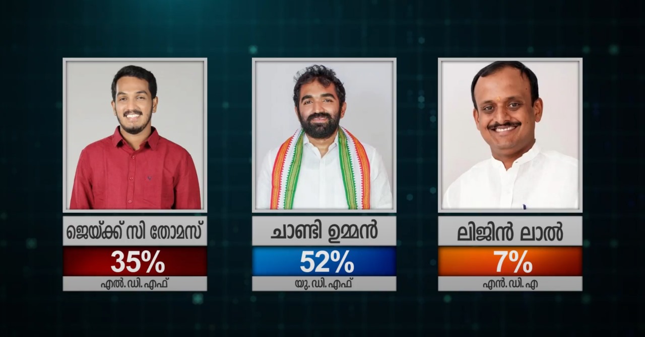 1970ലെ കന്നിയങ്കത്തിലെ ഭൂരിപക്ഷം 7,288 വോട്ടായിരുന്നെങ്കിൽ, 2016ൽ എസ്എഫ്ഐ നേതാവ് ജെയ്ക് സി തോമസിനോട് ഏറ്റുമുട്ടിയപ്പോൾ ഭൂരിപക്ഷം 27,092 ആയിരുന്നു. പക്ഷേ കഴിഞ്ഞ തവണ ഭൂരിപക്ഷം 9,044 ലേക്കു താഴ്ന്നു. 2011 മുതൽ ബിജെപിയുടെ വോട്ടുശതമാനത്തിൽ വർധനയുണ്ട്. 2006ൽ 3.05 ശതമാനത്തിൽനിന്ന് 2011ൽ 5.71 ശതമാനവും, 2016ൽ 11.93 ശതമാനമായും ഉയർന്നു. എന്നാൽ, 2021ൽ അത് 8.87 ശതമാനമായി താഴ്ന്നു. ഇപ്പോൾ ബിജെപിയുടെ വോട്ട് വിഹിതം അതിലും താഴെപ്പോവുമെന്നാണ് മറുനാടൻ സർവേ സൂചിപ്പിക്കുന്നത്. ഉമ്മൻ ചാണ്ടിയുടെ 2016ലെ വിജയത്തോട് സാമ്യമുള്ള വിജയത്തിലേക്ക് മകൻ ചാണ്ടി ഉമ്മനും കടക്കുകയാണെന്നും സർവേ ഫലം വ്യക്തമാക്കുന്നു.