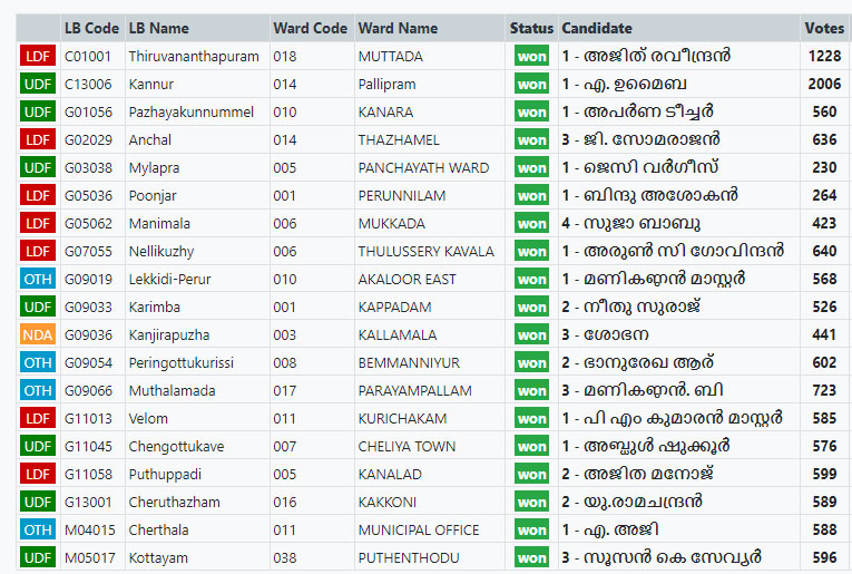 തിരഞ്ഞെടുപ്പ് ഫലം ചുവടെ
