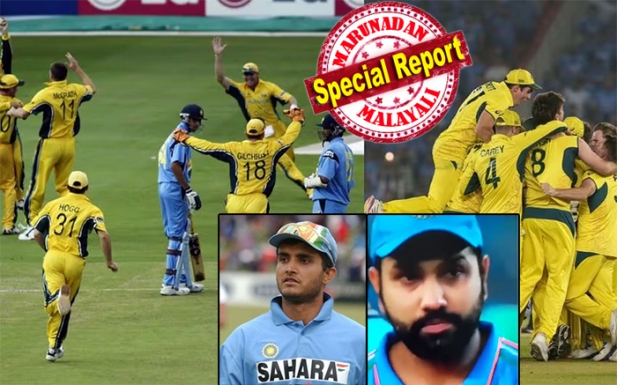 2003-ലെ ദക്ഷിണാഫ്രിക്കൻ ലോകകപ്പ് ഫൈനലിന്റെ ആവർത്തനമെന്നോണം ഇന്ത്യയ്ക്ക് ഒരിക്കൽ കൂടി ഒരു തോൽവി. അന്ന് ദുരന്തനായകനായത് സൗരവ് ഗാംഗുലിയായിരുന്നു. ഇന്ന് രോഹിത് ശർമ്മയും. ഇന്ത്യൻ ആരാധകർക്ക് തങ്ങളുടെ മനസിൽ നിന്ന് ഇന്നും മായ്ച്ചുകളയാൻ സാധിക്കാത്ത നീറുന്ന ഓർമകളിലൊന്നാണ് 2003 മാർച്ച് 23-ാം തീയതി ജൊഹാനസ്ബർഗിലെ വാണ്ടറേഴ്സ് സ്റ്റേഡിയത്തിൽ അരങ്ങേറിയ ആ ഫൈനൽ. സച്ചിനും സെവാഗും ഗാംഗുലിയും ദ്രാവിഡും യുവരാജ് സിങ്ങും സഹീർ ഖാനും ശ്രീനാഥുമെല്ലാം അടങ്ങിയ അന്നത്തെ ടീം ഫൈനലിൽ ഓസീസിനെ കീഴടക്കി കിരീടവുമായി മടങ്ങുമെന്ന് തന്നെ ഇന്ത്യൻ ആരാധകർ കരുതി.