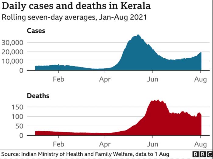 മാത്രമല്ല ഇടയ്ക്കിടെ എത്തിയ പെരുന്നാളും ഉത്സവവും ഒക്കെ ആഘോഷിക്കാൻ ജനങ്ങൾക്കായി ലോക്ഡൗൺ ഇളവുകൾ നൽകിയത് ശാസ്ത്രീയ തീരുമാനം ആയിരുന്നില്ലെന്നാണ് ബിബിസി കണ്ടെത്തുന്നത്. പുതിയ പോസിറ്റീവ് കേസുകൾ കുറച്ചു വരേണ്ട സമയത്തു രോഗവ്യാപനത്തിനായി എല്ലാം തുറന്നിടുന്ന മണ്ടൻ തീരുമാനമാണ് കേരളം സ്വീകരിച്ചത്. ജാഗ്രതയിൽ ഒരു കുറവും വരുത്താതെയാണ് കോവിഡിനെ നേരിടേണ്ടത് എന്ന് ഈ രോഗത്തിന്റെ വ്യാപനം ഇതിനകം പഠിപ്പിച്ചു കഴിഞ്ഞു. കേരളത്തിന് മാത്രം ആ യാഥാർഥ്യത്തെ അംഗീകരിക്കാതിരിക്കാനാകില്ല.