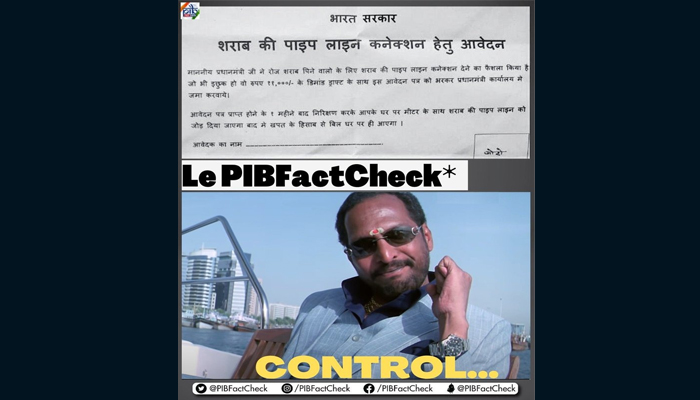 'ലിക്വർ പൈപ്പ്ലൈനിന്' അപേക്ഷ ക്ഷണിച്ചെന്നു സൂചിപ്പിക്കുന്ന വിജ്ഞാപനത്തിന്റെ പകർപ്പെന്ന മട്ടിൽ പ്രചരിക്കുന്ന കടലാസും പിഐബി ട്വീറ്റിലുണ്ടായിരുന്നു. 'വെൽകം' എന്ന ബോളിവുഡ് സിനിമയിലെ നാനാ പടേക്കറുടെ ചിത്രം സഹിതമായിരുന്നു പോസ്റ്റ്. ദേഷ്യം വരുമ്പോൾ 'കൺട്രോൾ, കൺട്രോൾ' എന്നു പറഞ്ഞു സ്വയം നിയന്ത്രിക്കാൻ ശ്രമിക്കുന്ന കഥാപാത്രമാണിത്. മദ്യപരോടു കേന്ദ്രത്തിനും ഇക്കാര്യമാണ് പറയാനുള്ളത്: 'ആഗ്രഹങ്ങൾ നിയന്ത്രിക്കൂ!'. ഇത്തരത്തിൽ ഒരു പദ്ധതിയെക്കുറിച്ച് ഇന്ത്യയിൽ എവിടെയും ചർച്ചപോലും നടന്നിട്ടില്ല. എതോ ഒരു മദ്യപന്റെ ദിവാ സ്വപ്നങ്ങൾ എന്നല്ലാതെ ഈ 'ഉത്തരവിനെ' കാണാൻ കഴിയില്ല.