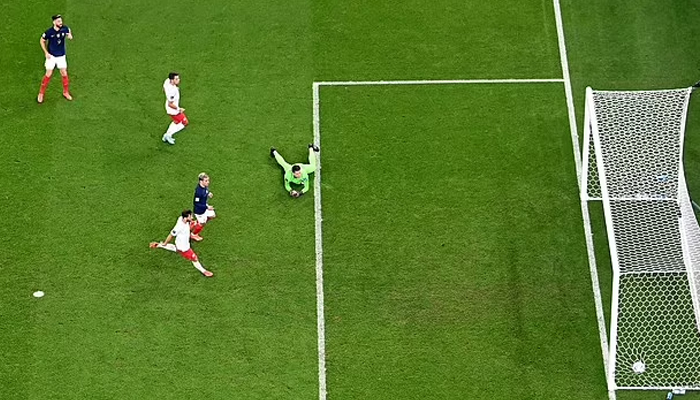 ഇൻജറി ടൈമിന്റെ അവസാന മിനിറ്റിൽ ലഭിച്ച പെനൽറ്റിയിൽനിന്നാണ് പോളണ്ട് ആശ്വാസഗോൾ നേടിയത്. ഫ്രഞ്ച് ബോക്സിലേക്കെത്തിയ പോളണ്ട് മുന്നേറ്റം തടയുന്നതിനിടെ ദയോട്ട് ഉപമെകാനോ പന്ത് കൈകൊണ്ട് തട്ടിയതിനായിരുന്നു പെനൽറ്റി. ലെവൻഡോവിസ്കി എടുത്ത ആദ്യ കിക്ക് ഫ്രഞ്ച് ഗോൾകീപ്പർ ഹ്യൂഗോ ലോറിസ് തടഞ്ഞെങ്കിലും, കിക്കെടുക്കും മുൻപേ ഫ്രഞ്ച് താരങ്ങൾ ബോക്സിൽ പ്രവേശിച്ചതിനാൽ റഫറി വീണ്ടും പെനൽറ്റി വിധിച്ചു. ഇത്തവണ കിക്കെടുത്ത ലെവൻഡോവിസ്കി പിഴവുകളില്ലാതെ പന്ത് വലയിലാക്കി. ഖത്തർ ലോകകപ്പിൽ അവസാന സെക്കൻഡിൽ ആശ്വാസഗോളുമായി പോളണ്ടിന് മടക്കം.
