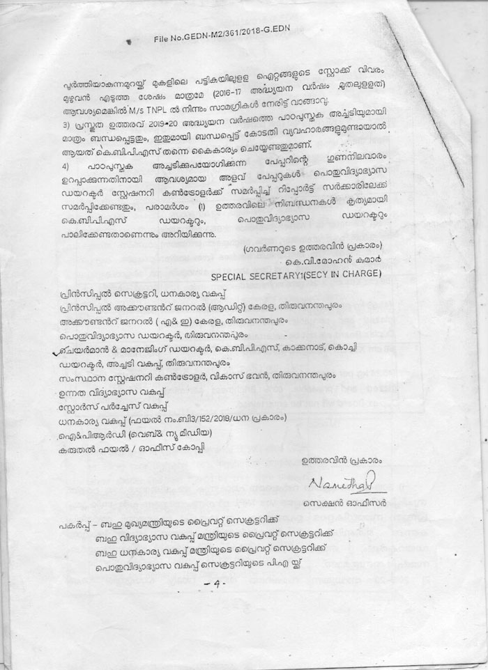 2017-18 ൽ കെ.ബി.പി.എസിന് പുസ്തകം വാങ്ങാൻ 75 കോടി രൂപ സർക്കാർ നൽകി. 2019-20 ൽ ടെൻഡറില്ലാതെ പേപ്പർ വാങ്ങി. ഒരു കിലോയ്ക്ക് 76.60 രൂപ എന്ന കണക്കിലാണ് പേപ്പർ വാങ്ങിയത്. കിലോയ്ക്ക് 54 രൂപ നിരക്കിൽ പേപ്പർ ലഭ്യമാകുമെന്നിരിക്കേയാണിത്. 2020-21 ലും ടെൻഡറില്ലാതെ പേപ്പർ മേടിച്ചു. മുഖ്യമന്ത്രിയുടെ ഇടപെടലും ഇതിൽ വ്യക്തമാണെന്ന് ഗോപാലകൃഷ്ണൻ ആരോപിച്ചു.